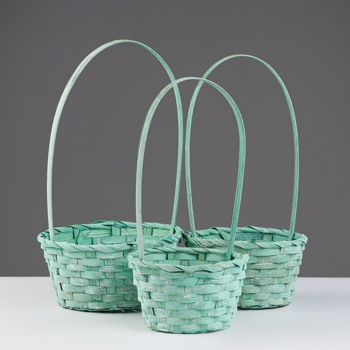 Набор корзин плетеных, 16x10/32, 18x10/34, 21x10/36, см, бирюзовый, бамбук