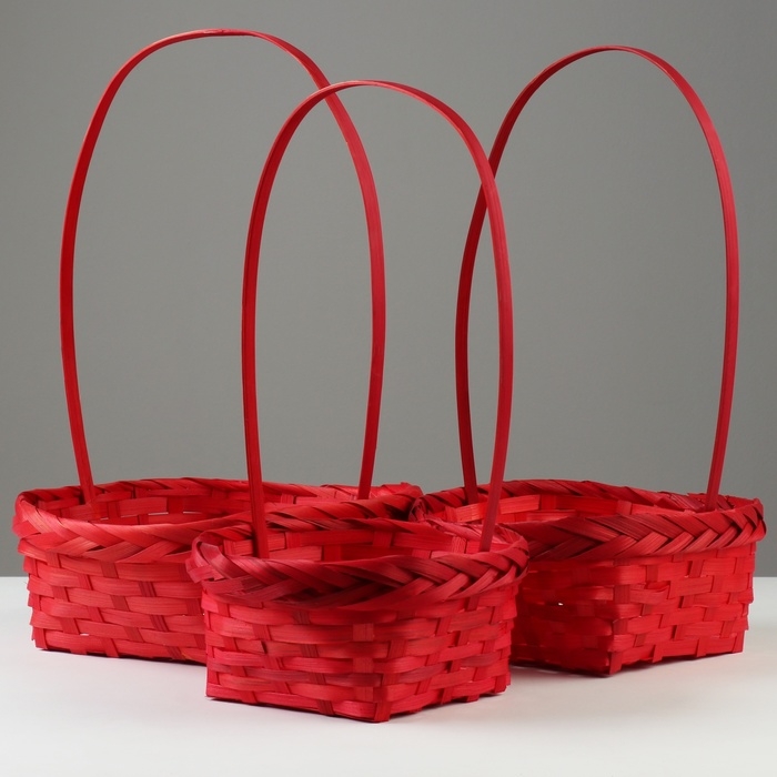 Набор корзин плетеных, D19x9/32 см, D22x9,5/34 см, D25x10/36 см, 3шт, красные, бамбук