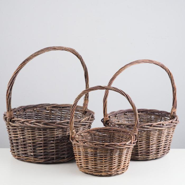Набор корзин плетеных (ива), 41х41х20/48 см / 35х35х17,5/42 см / 29х29х15/36 см, 3 шт., кори