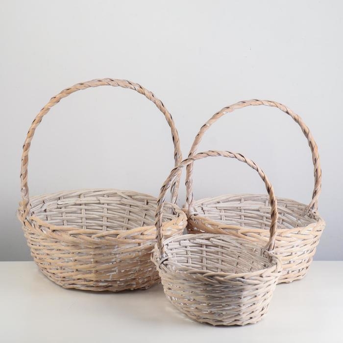 Плетёный набор корзин овальной формы, из цельного ивового прута с продольной ручкой. Имеют прочное основание и боковины.