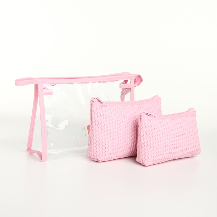 Набор косметичек 3 в 1 на молнии, цвет розовый