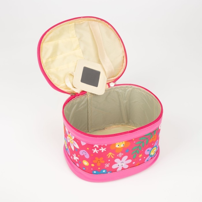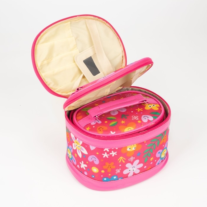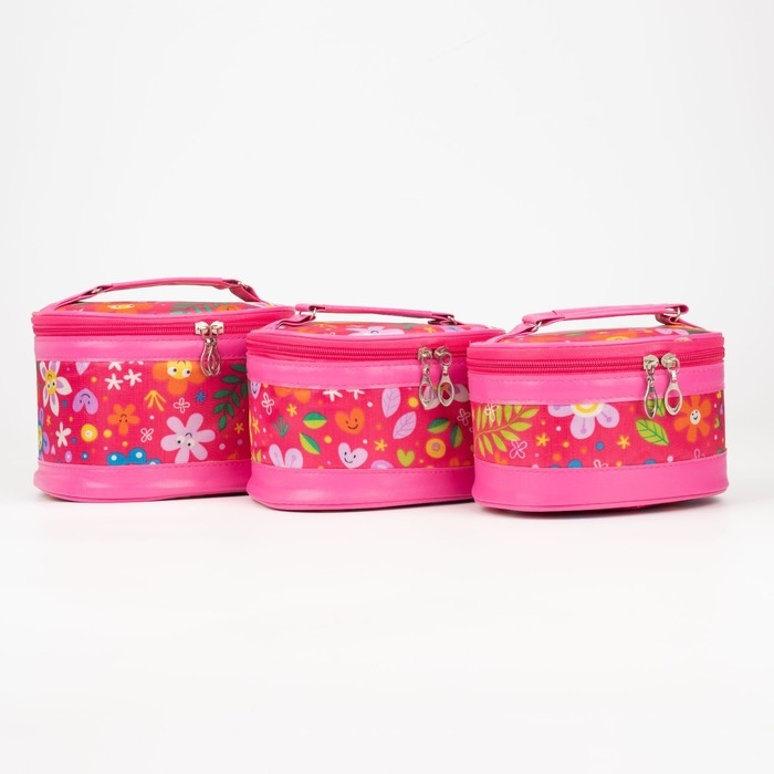 Набор косметичек на молниях, 3 в 1, зеркало, цвет розовый