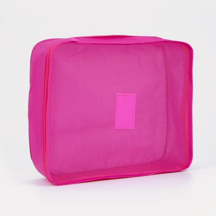 Набор косметичек на молниях, 6 в 1, цвет малиновый