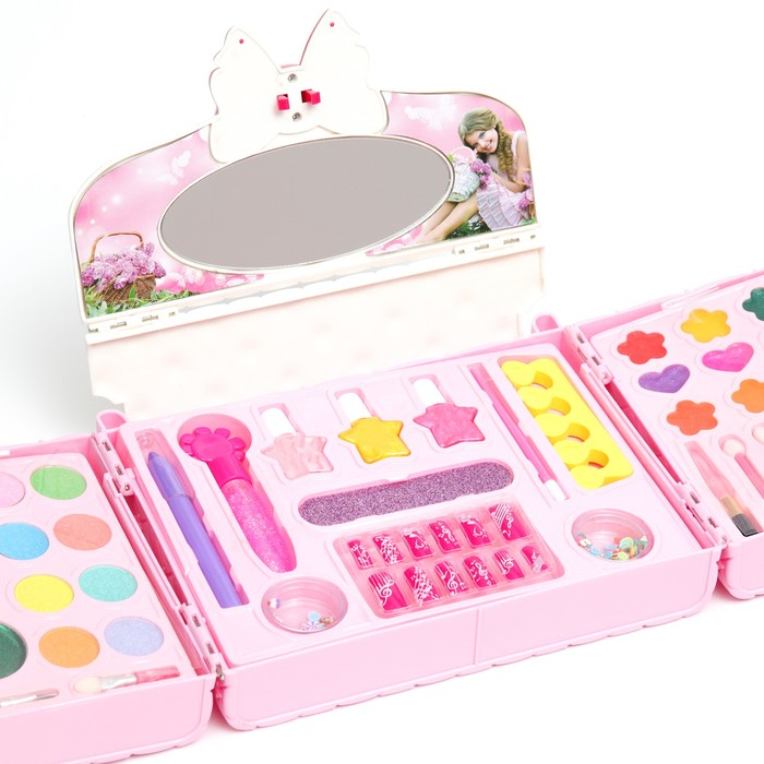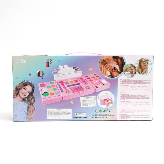 Детская косметика позволит ребёнку устраивать эксперименты со своим стилем. Набор поможет девочке подобрать оптимальные варианты для вечерних и дневных образов. Косметика без труда смывается водой или с помощью ватного диска и безопасна для детской кожи.