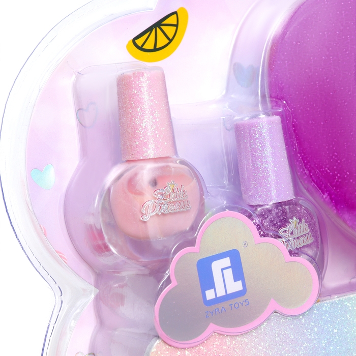 - Лак для ногтей (2 шт): Два ярких оттенка лака позволяют создавать уникальные дизайны на ногтях, добавляя цвет и веселье.