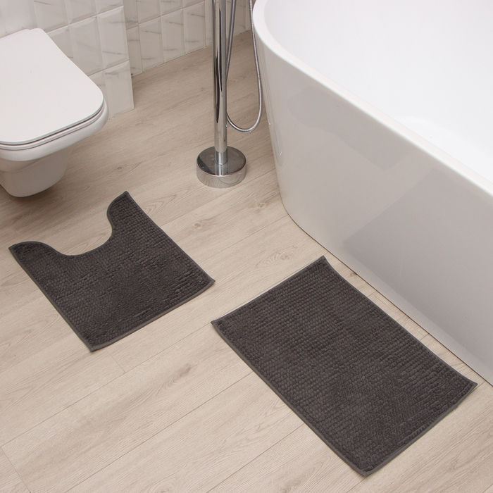 Набор ковриков для ванной Этель Букли цвет темно-серый 2 шт, 38х58 см, 48х38 см