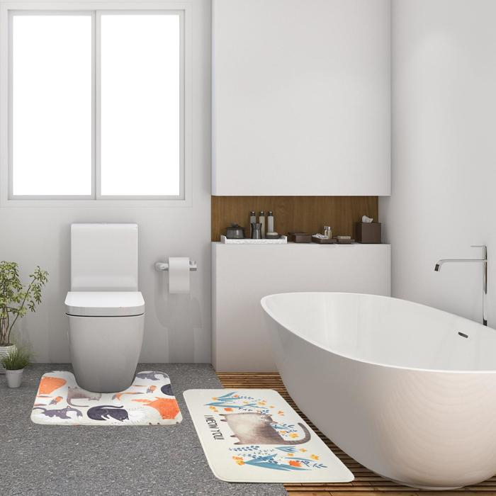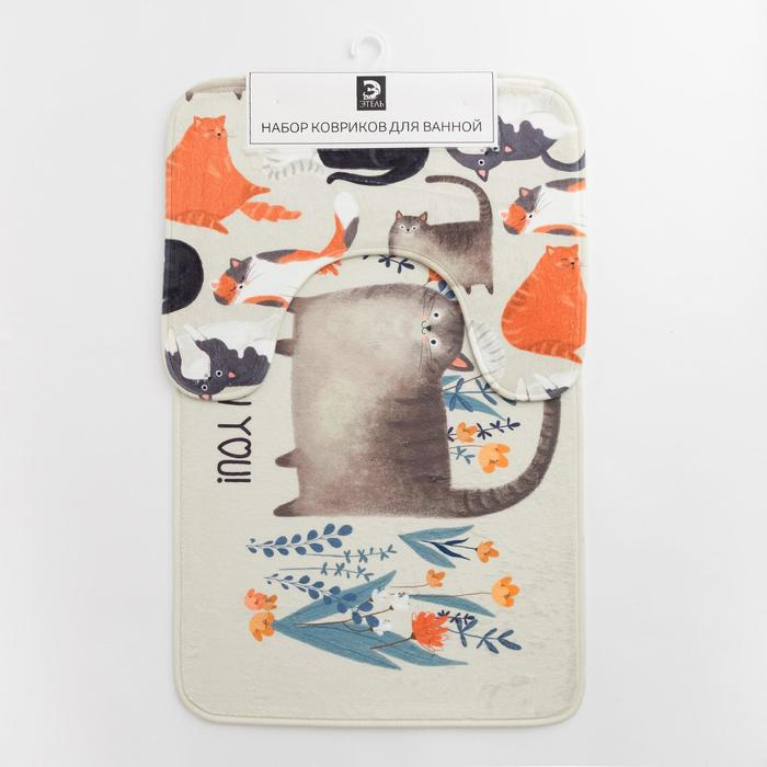 Набор ковриков для ванной Этель "Котики" 2 шт, 80х50 см, 50х40 см, велюр