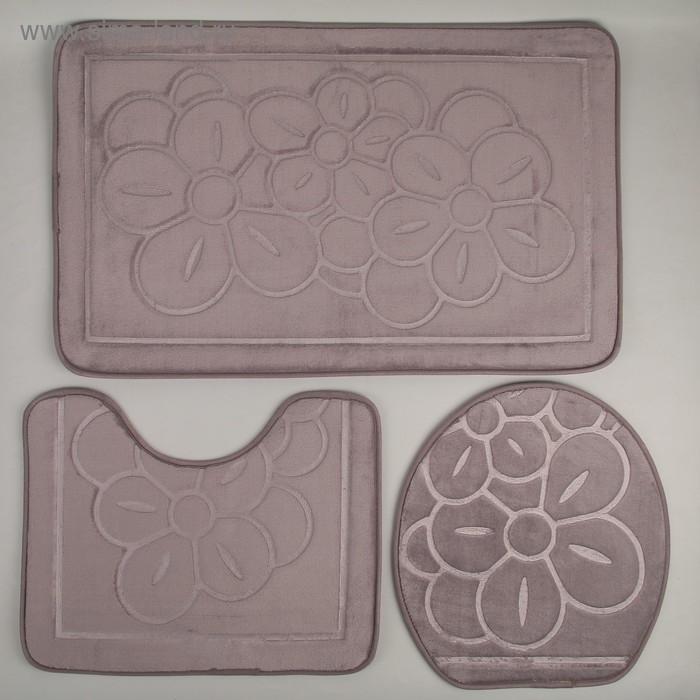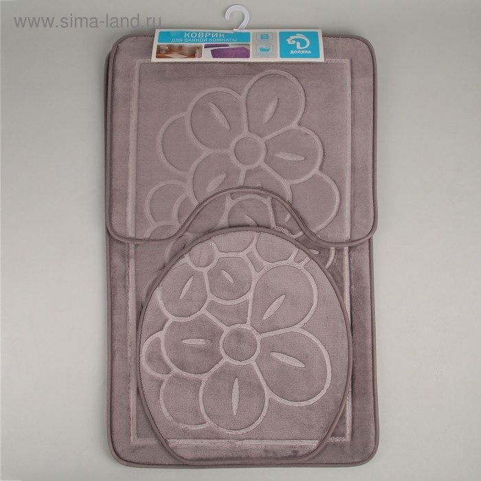 Набор ковриков для ванной и туалета Доляна, 3 шт, 36×43, 40×50, 50×80 см, цвет серый