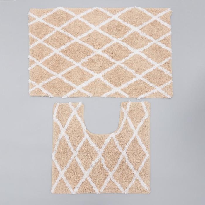 Набор ковриков для ванной и туалета Доляна «AntiSlip», 2 шт, 50×80 см, 50×50 см