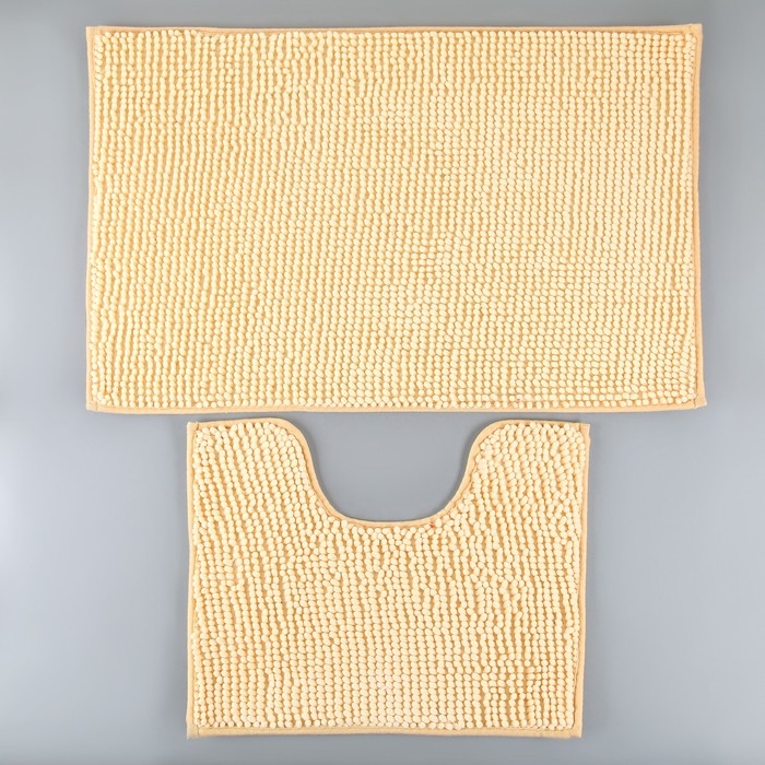 Набор ковриков для ванной и туалета Доляна «Букли», 2 шт, 40×50, 50×80 см цвет бежевый