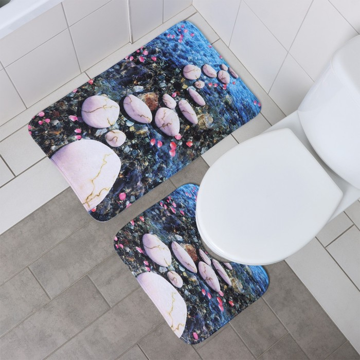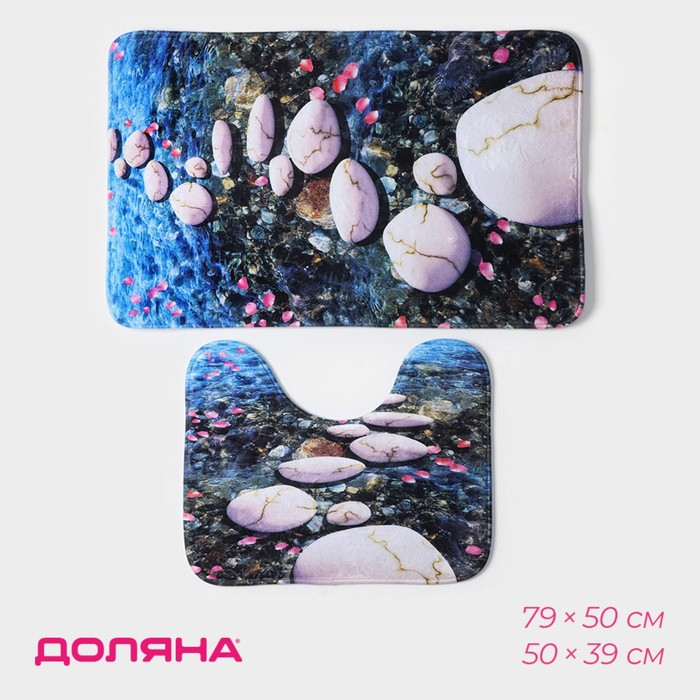 Набор ковриков для ванной и туалета Доляна «Галька», 2 шт, 79×50, 50×39 см