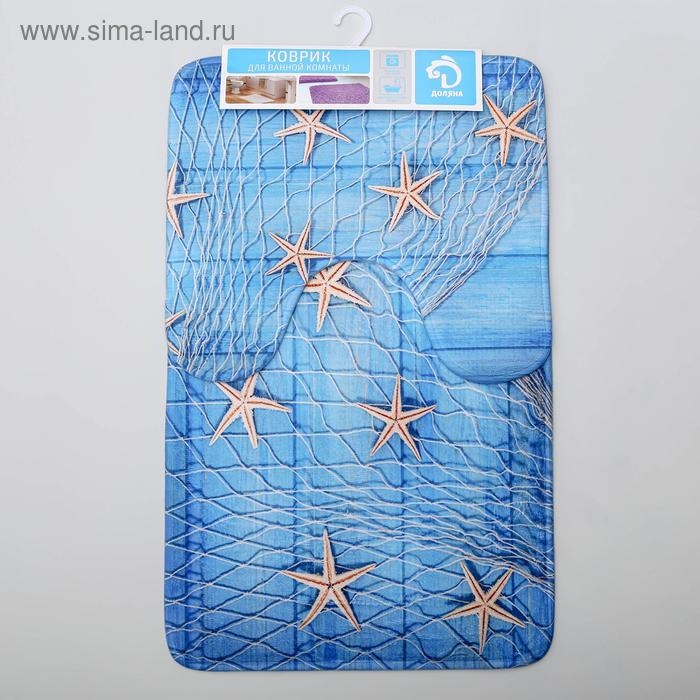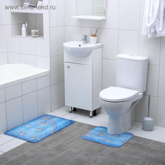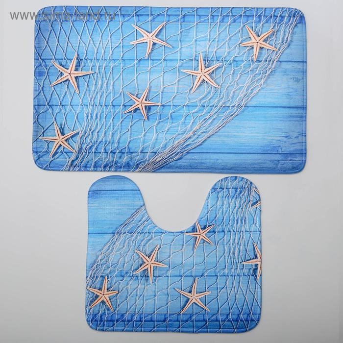 Набор ковриков для ванной и туалета Доляна «Морские звёзды», 2 шт, 40×45, 45×75 см