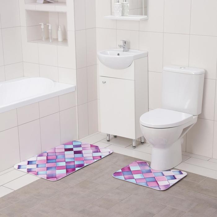 Набор ковриков для ванной и туалета Доляна «Мозаика», 2 шт: 40×50, 50×80 см