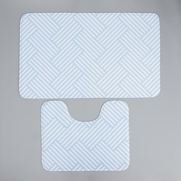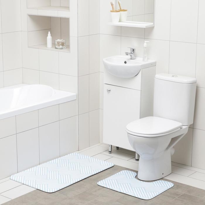 Набор ковриков для ванной и туалета Доляна «Паркет», 2 шт: 50×80, 40×50 см, цвет голубой
