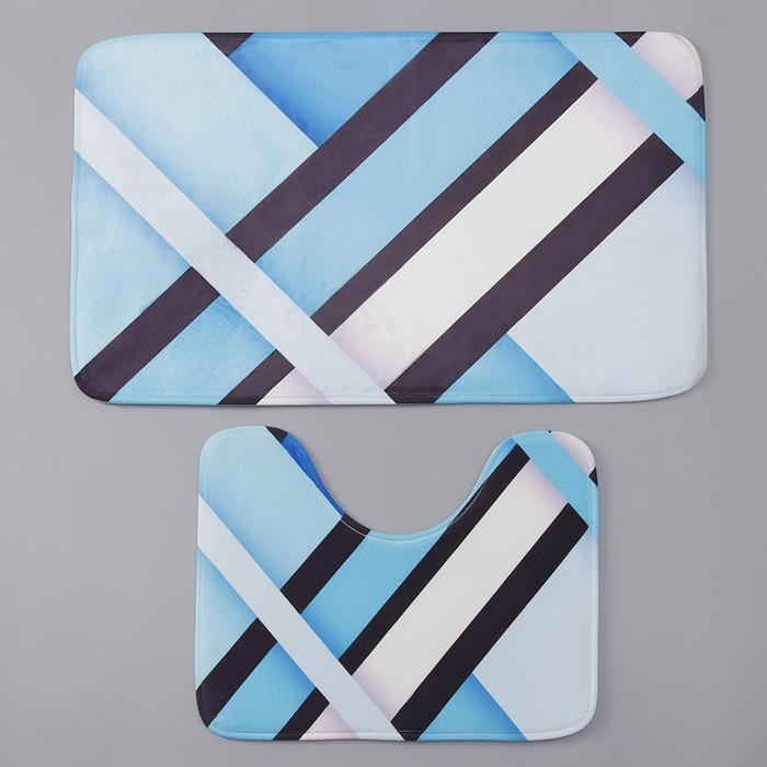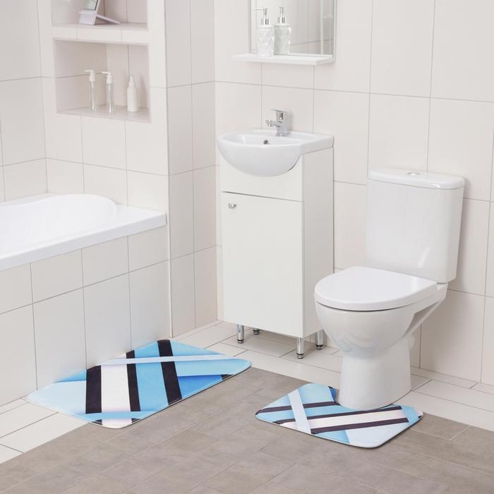 Набор ковриков для ванной и туалета Доляна «Полосатый», 2 шт: 40×50, 50×80 см
