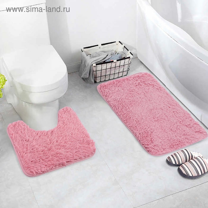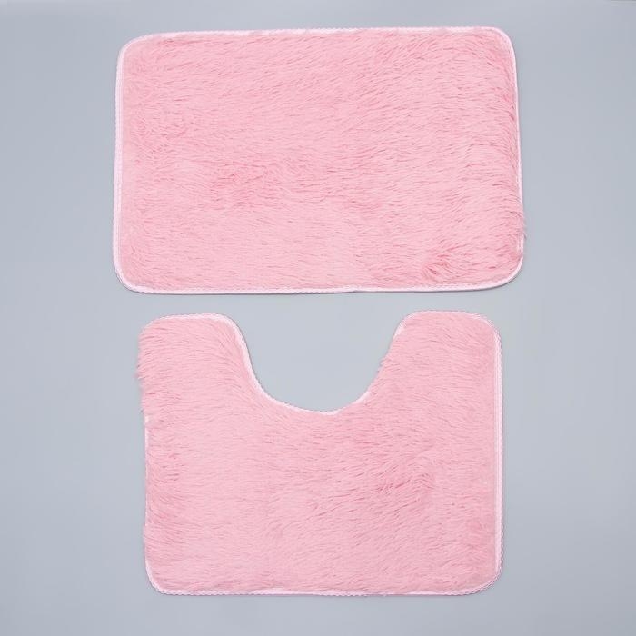 Набор ковриков для ванной и туалета Доляна «Пушистик», 2 шт, 38×40, 40×60 см, цвет розовый