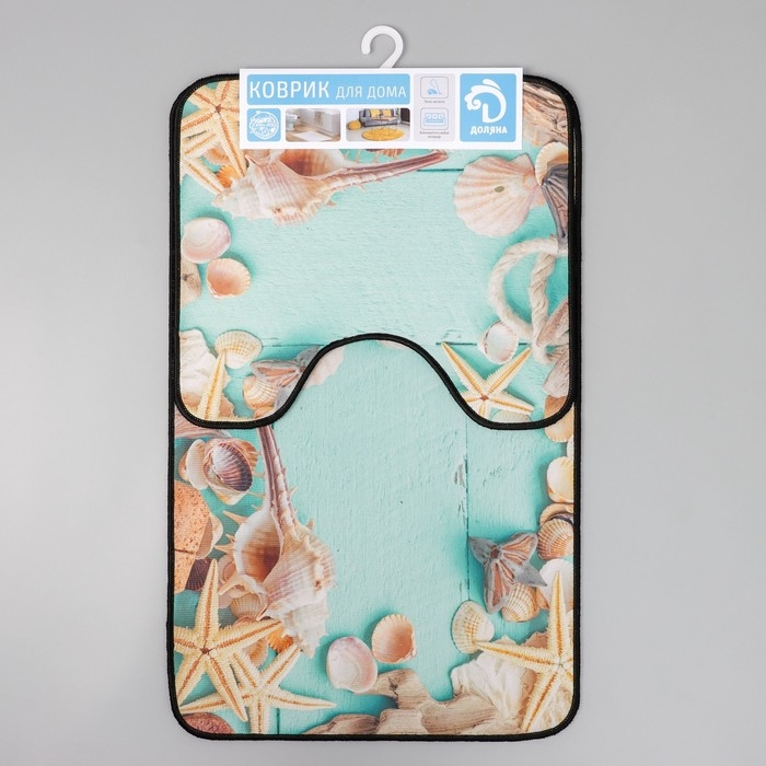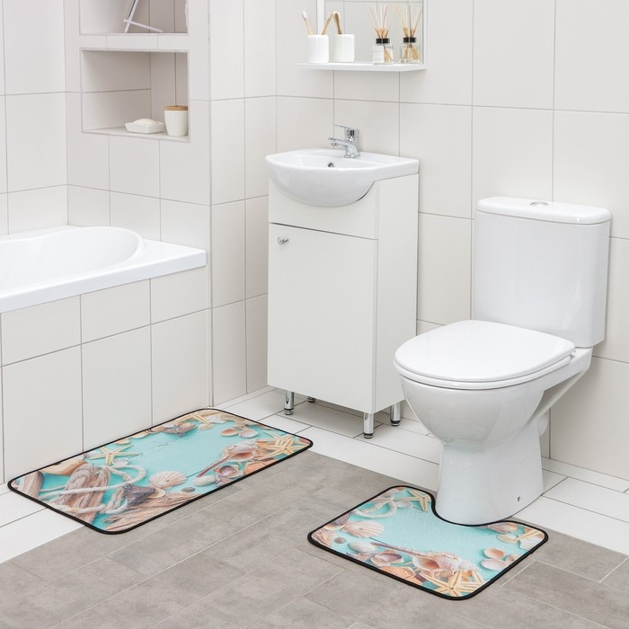 Набор ковриков для ванной и туалета Доляна «Ракушки», 2 шт: 40×45, 45×75 см