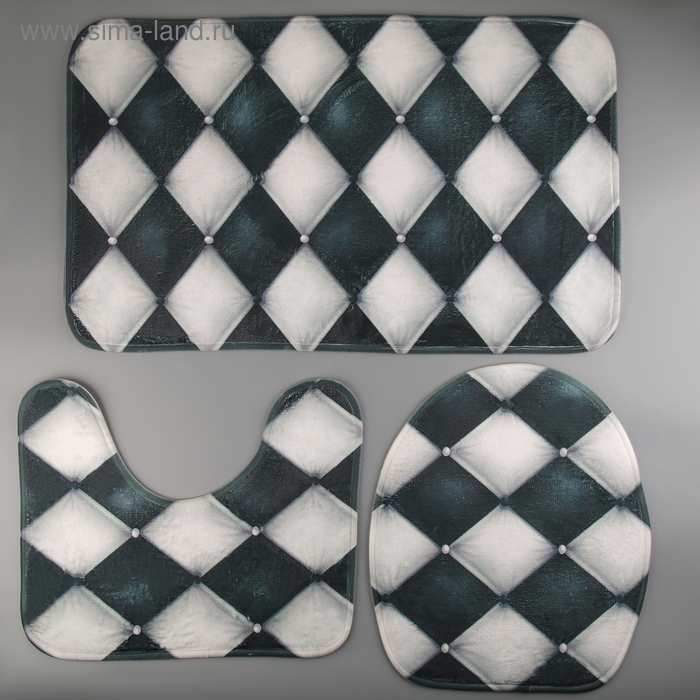 Набор ковриков для ванной и туалета Доляна «Ромбы», 3 шт: 37×45, 37×45, 45×75 см