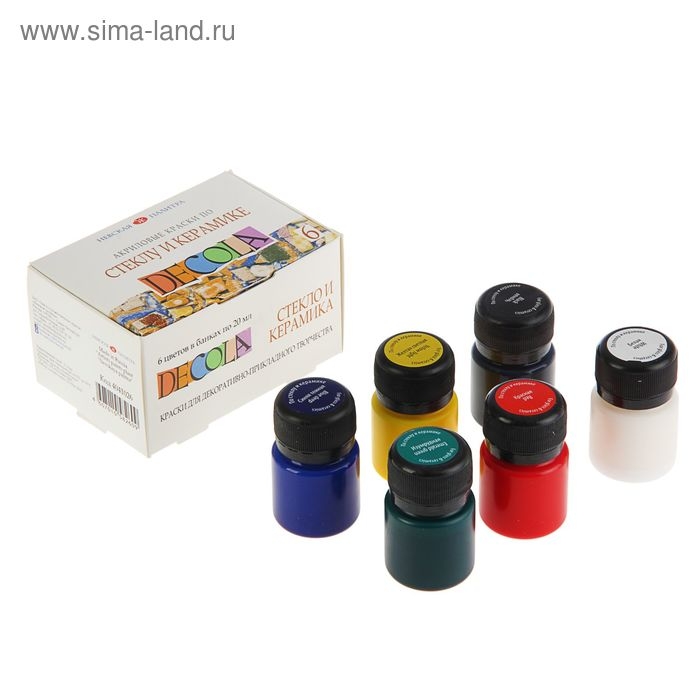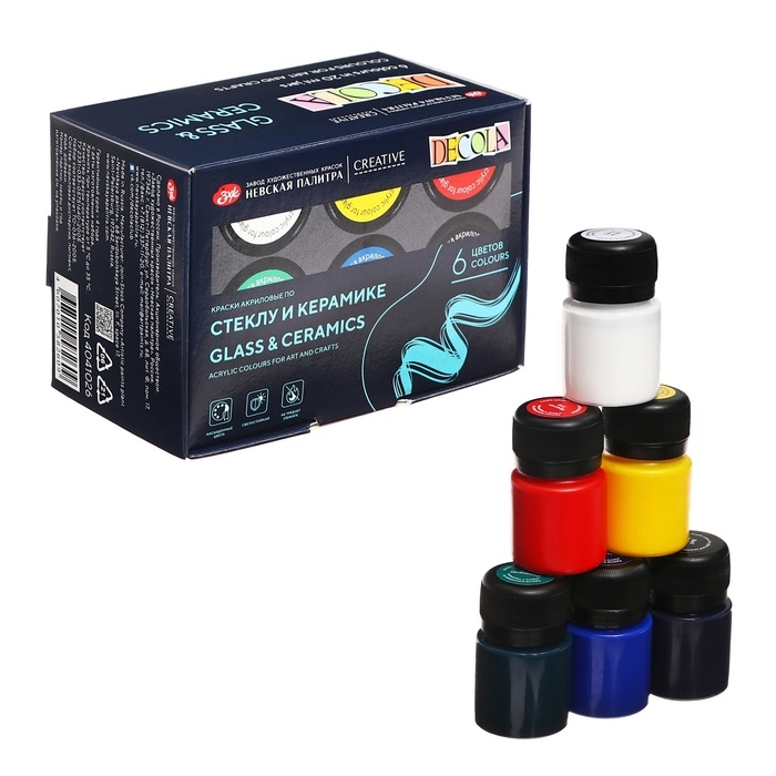 Набор красок по стеклу и керамике Decola, 6 цветов х 20 мл, 4041026
