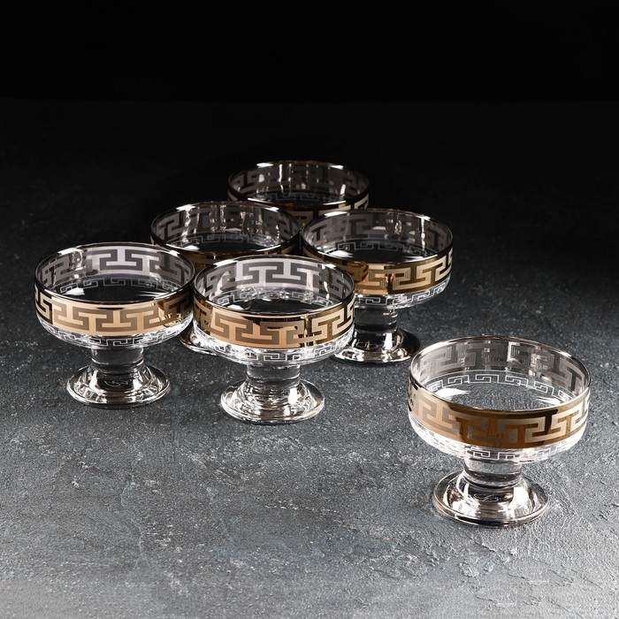 Набор креманок «Греческий узор», 200 мл, d=10 см, 6 шт, цвет напыления золотой