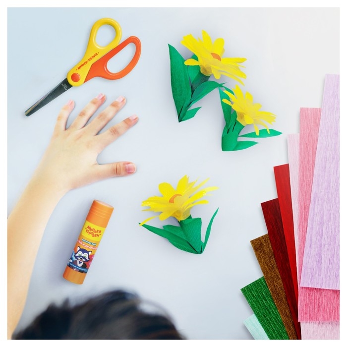 Набор крепированной флористической бумаги А4, 12 листов, 12 цветов, Мульти-Пульти "Енот в сказке", 110 г/м2, в папке