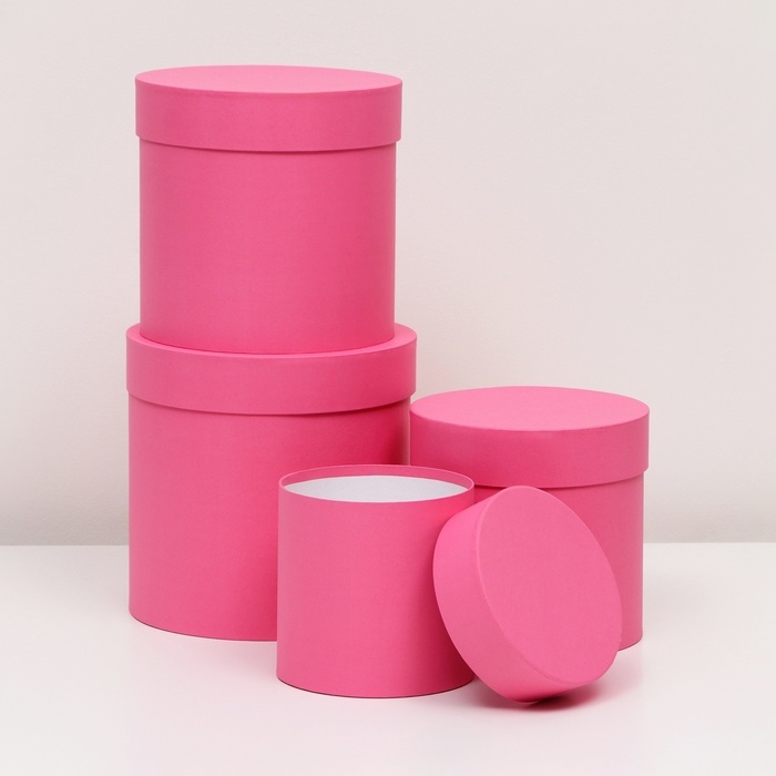 Набор круглых коробок 4 в 1 "Розовый" 20 х 20 - 13 х 13 см