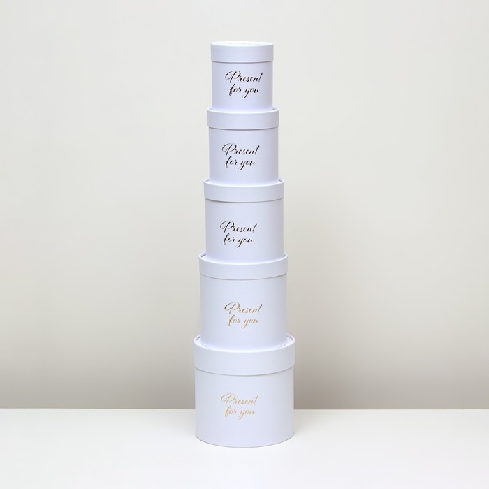 Набор круглых коробок 5 в 1, "Белый", 21х21х20, 18х18, 16х16, 14х14, 12х12 см