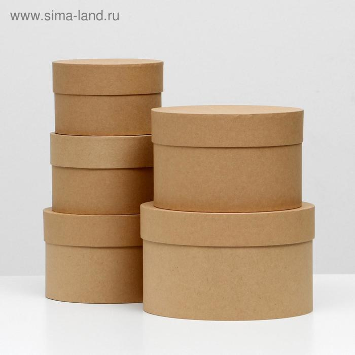 Набор круглых коробок 5 в 1 "Крафт однотонный", 23 х 23 х 14 - 15 х 15 х 10 см