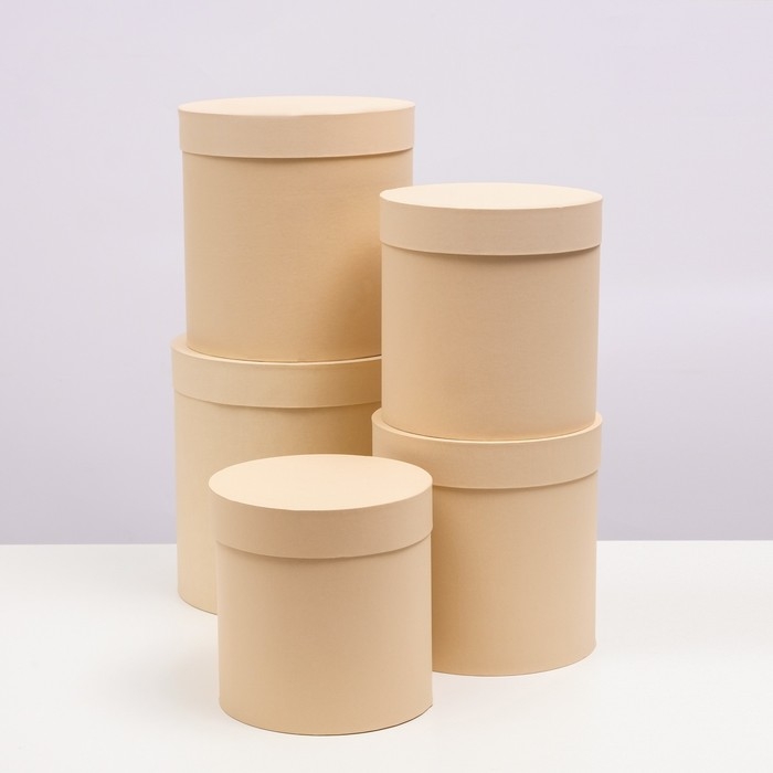 Набор круглых коробок 5 в 1 "Краски", кремовый, 25 х 25 х 25 - 19 х 19 х 19 см