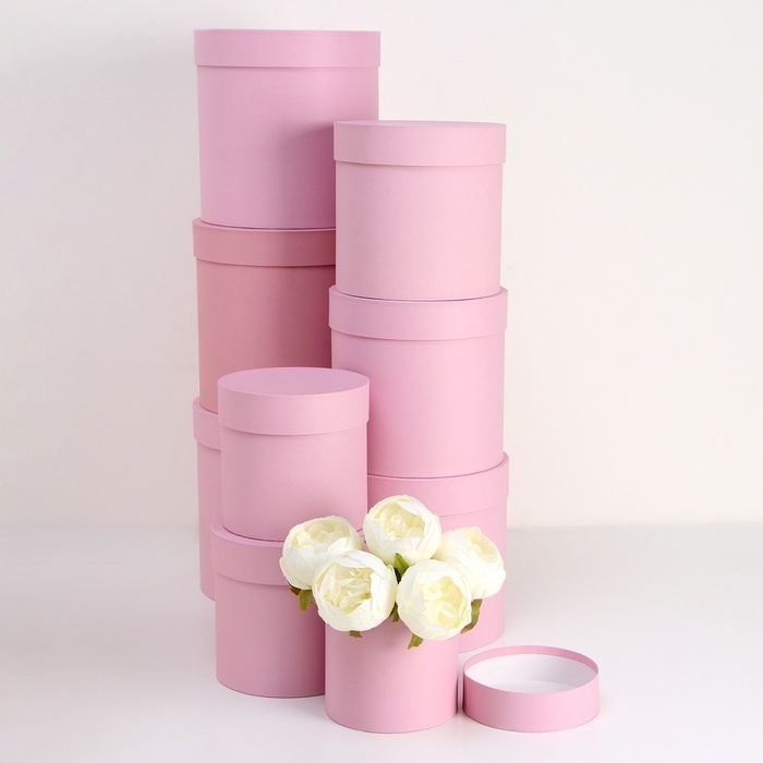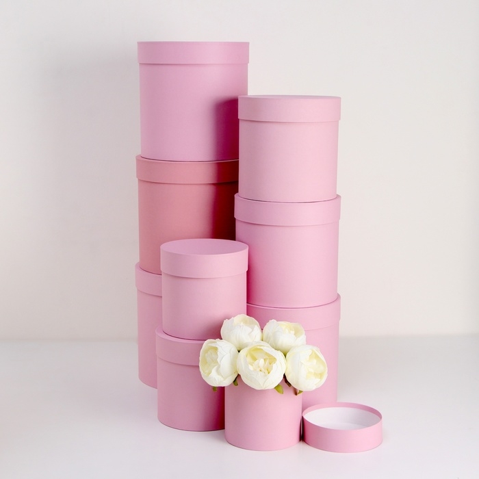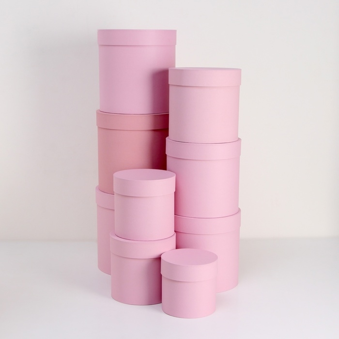 Набор круглых коробок 9 в 1 Пудра,23х23 - 13-13 см