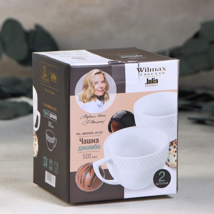 Набор кружек фарфоровых Wilmax «Юлия Высоцкая», 2 предмета: 500 мл, цвет белый