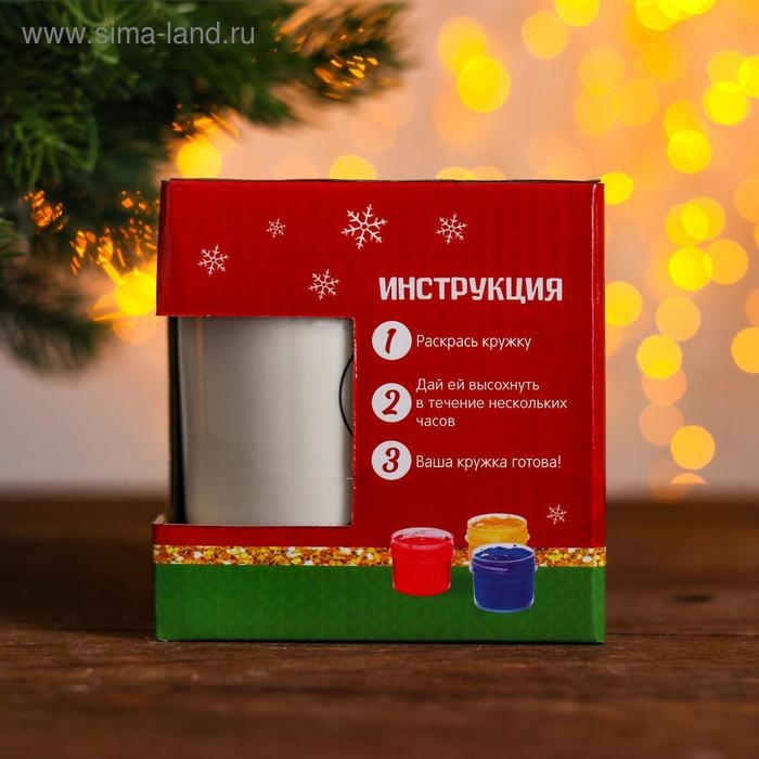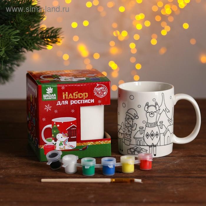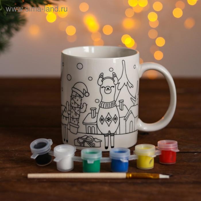 Набор кружка под раскраску «Лама новогодняя» краска 6 цв по 2 мл, кисть