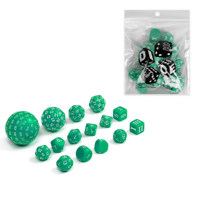 Набор кубиков для D&D (Dungeons and Dragons, ДнД) "Время игры", серия: D&D, 15 шт, зеленые