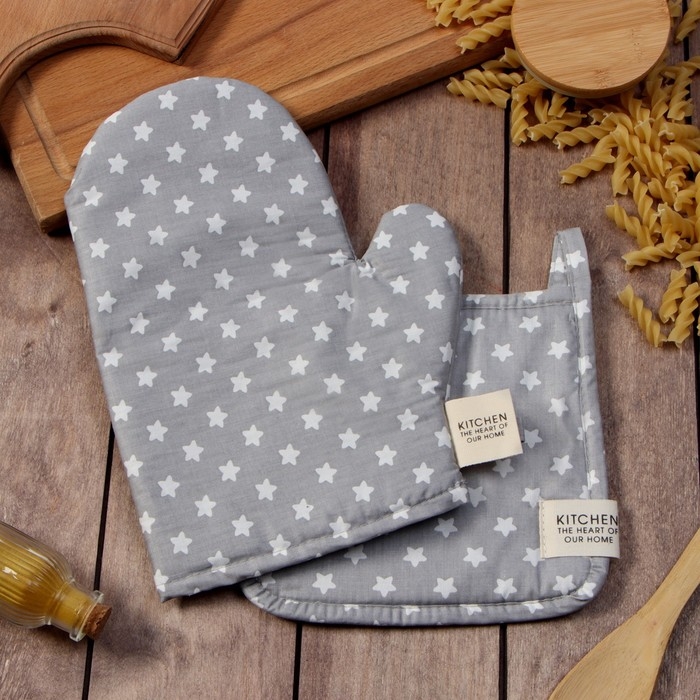 Набор кух. Этель "Звёзды": варежка 20х28 см, прихватка 19х19 см, 80% хл, 20% пэ