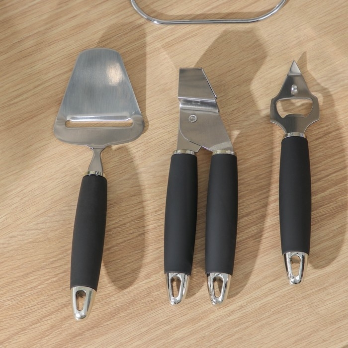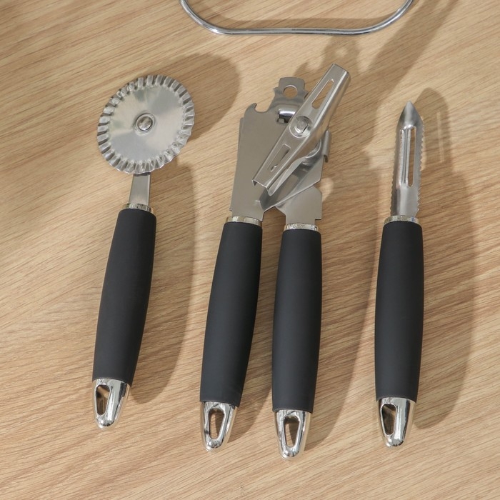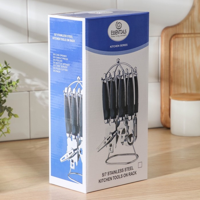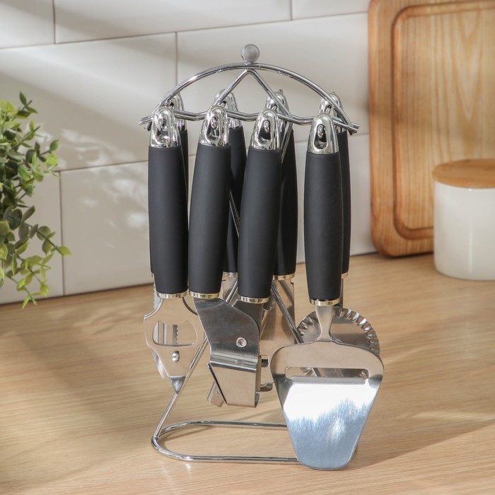 Набор кухонных инструментов «Реми», 6 предметов, на подставке, цвет чёрный