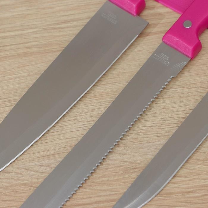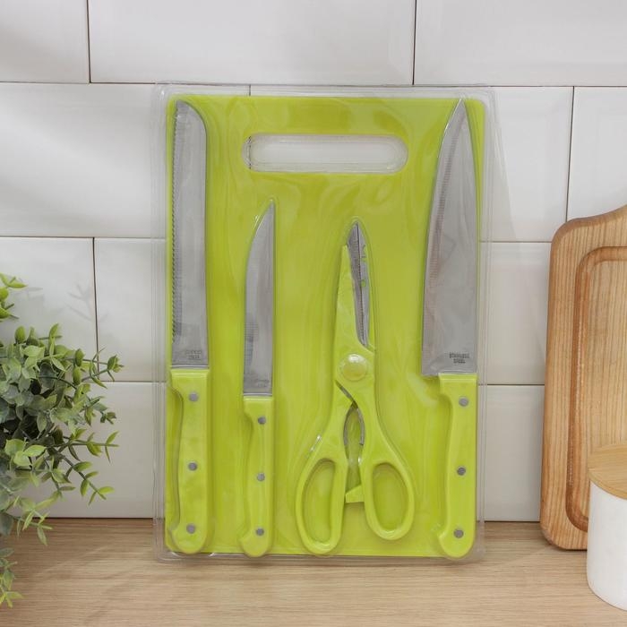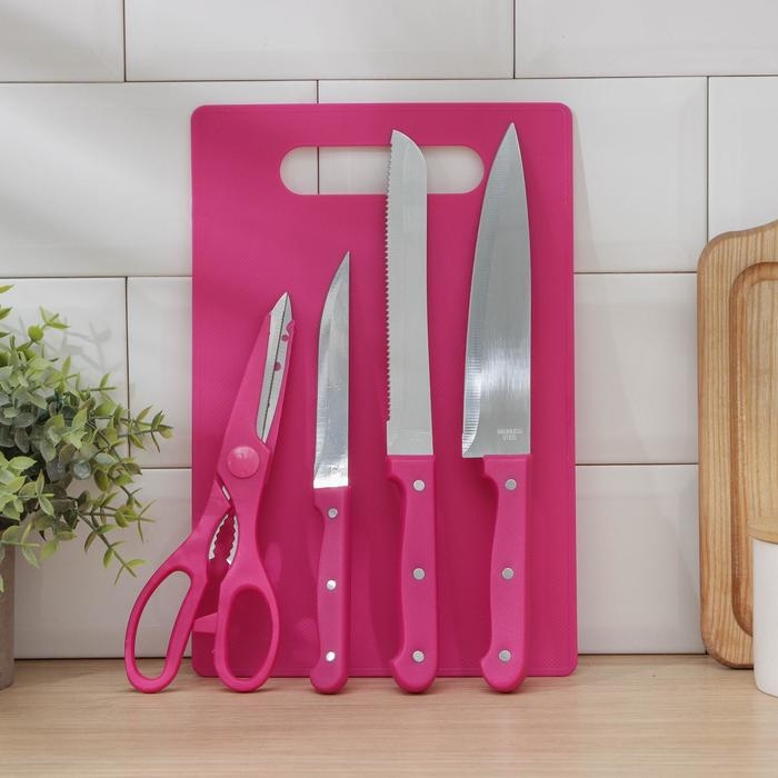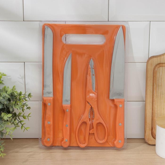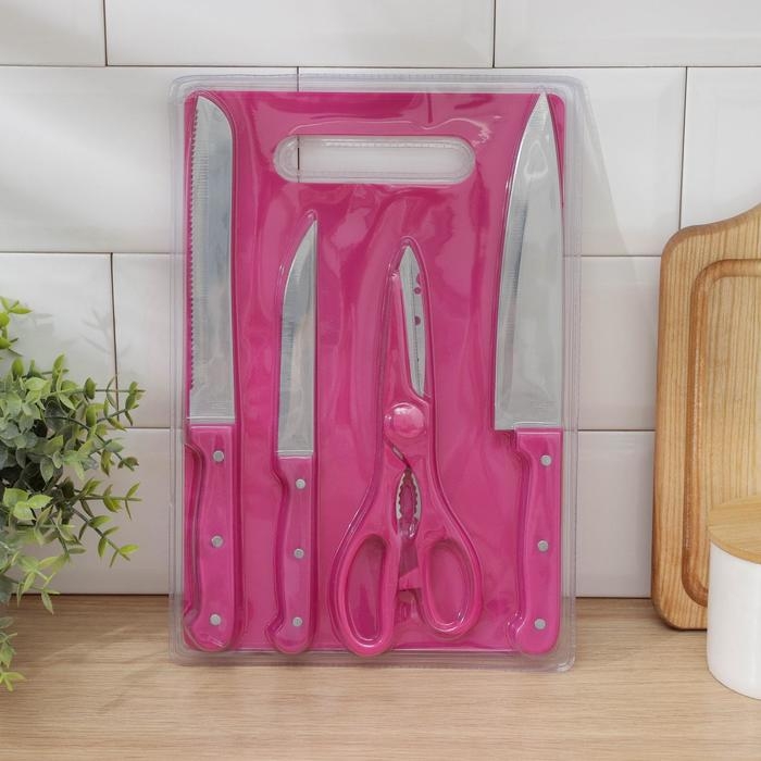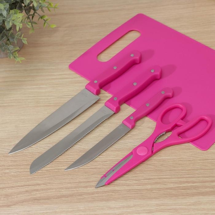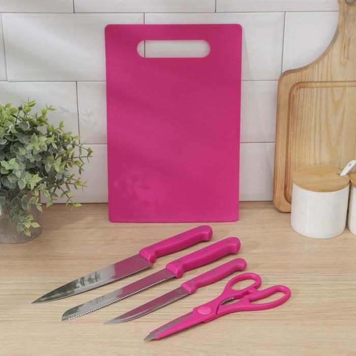 Набор кухонных принадлежностей, 5 предметов: ножи 12 см, 17 см, 17,5 см, доска, цвет МИКС