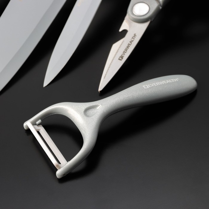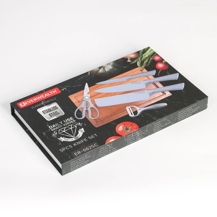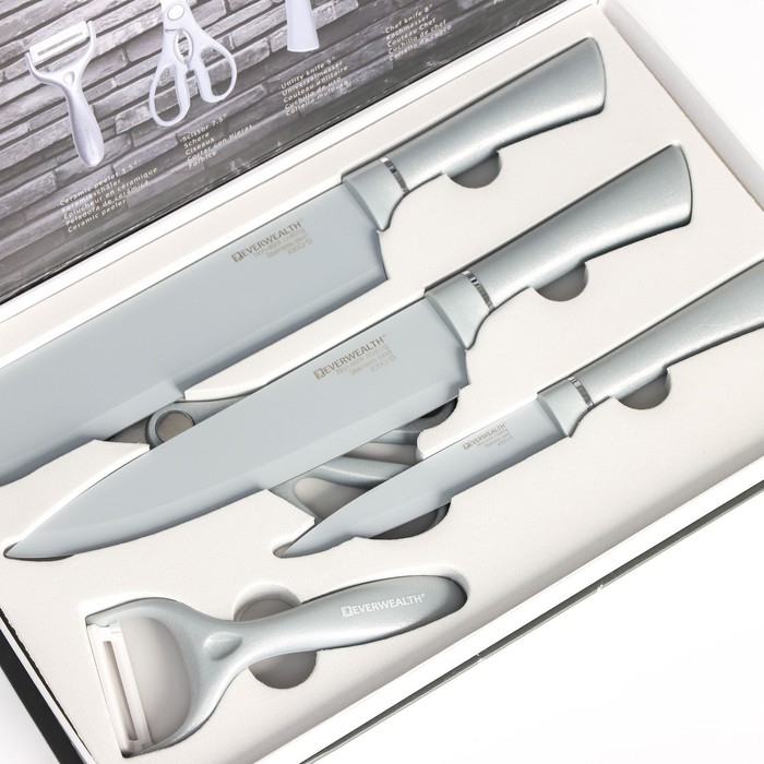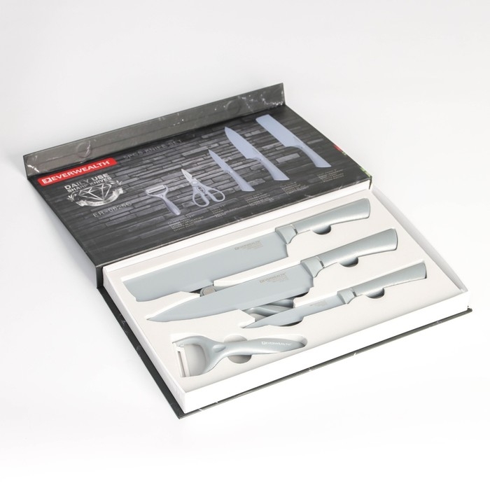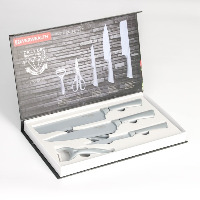 Набор кухонных принадлежностей Blades, 5 предметов: 3 ножа, овощечистка, ножницы в комплекте, цвет белый