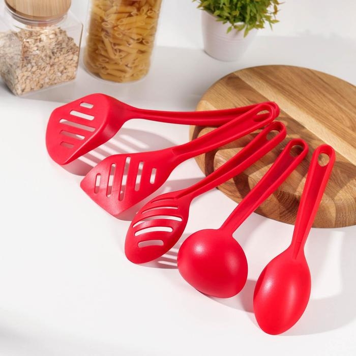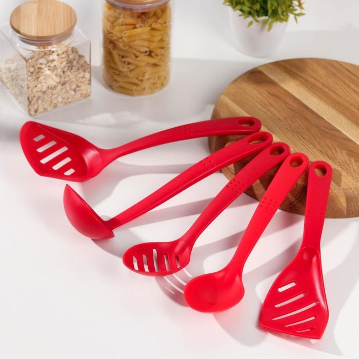 Набор кухонных принадлежностей Доляна «Точки», 5 предметов, цвет красный