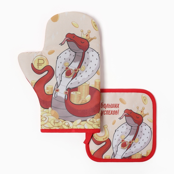 Набор кухонный Доляна "Больших успехов": прихватка 17х17 см, варежка-прихватка 20х28 см, 35% хлопок