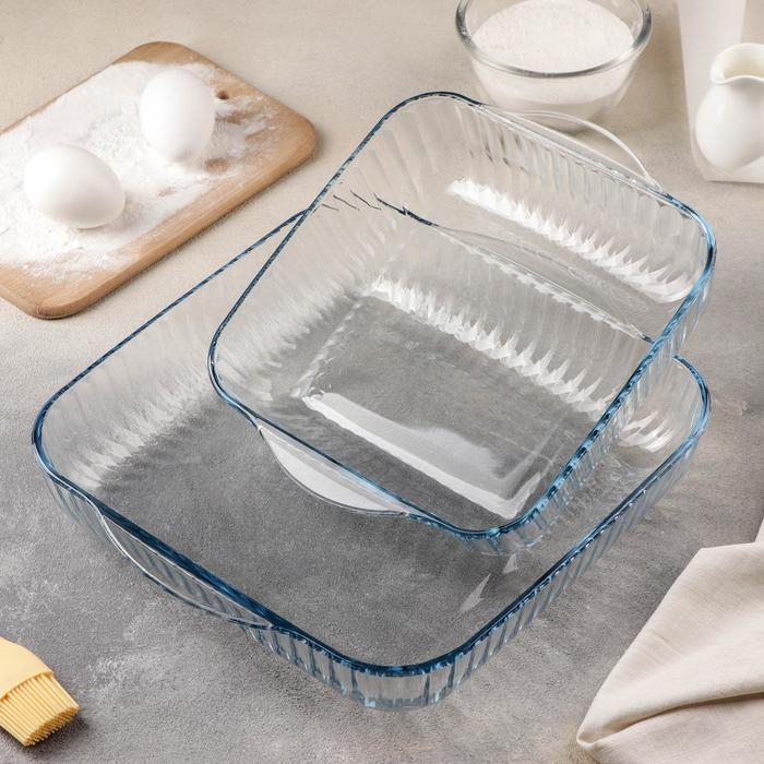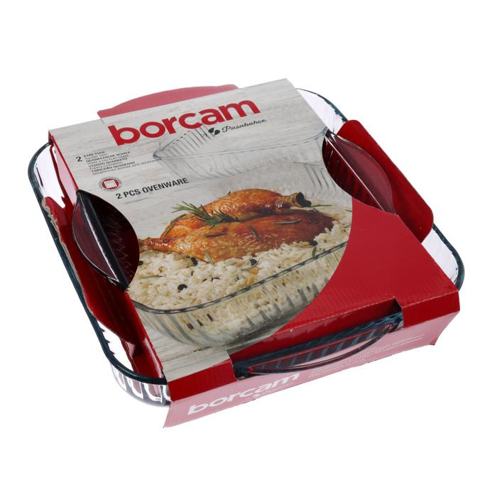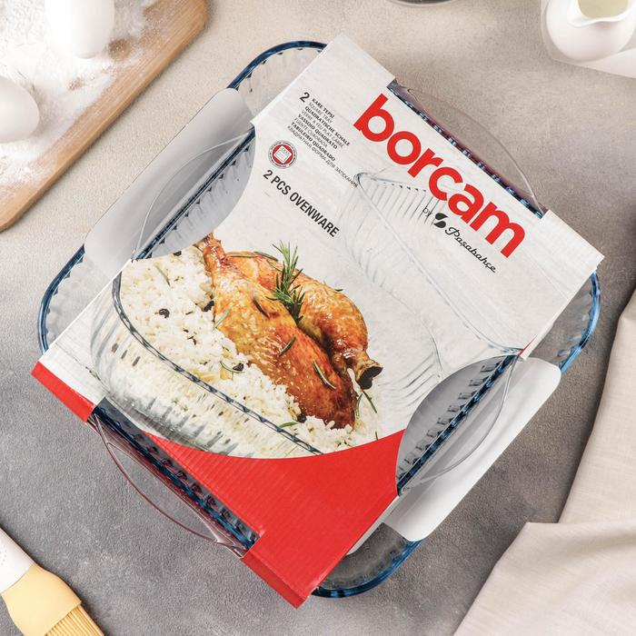 Набор квадратных форм из жаропрочного стекла для запекания Borcam, 2 предмета: 2 л, 3,5 л
