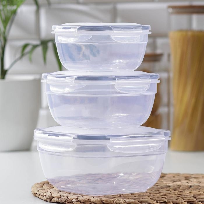 Набор ланч-боксов квадратных, 3 шт: 1, 7 л, 1 л, 0,6 л