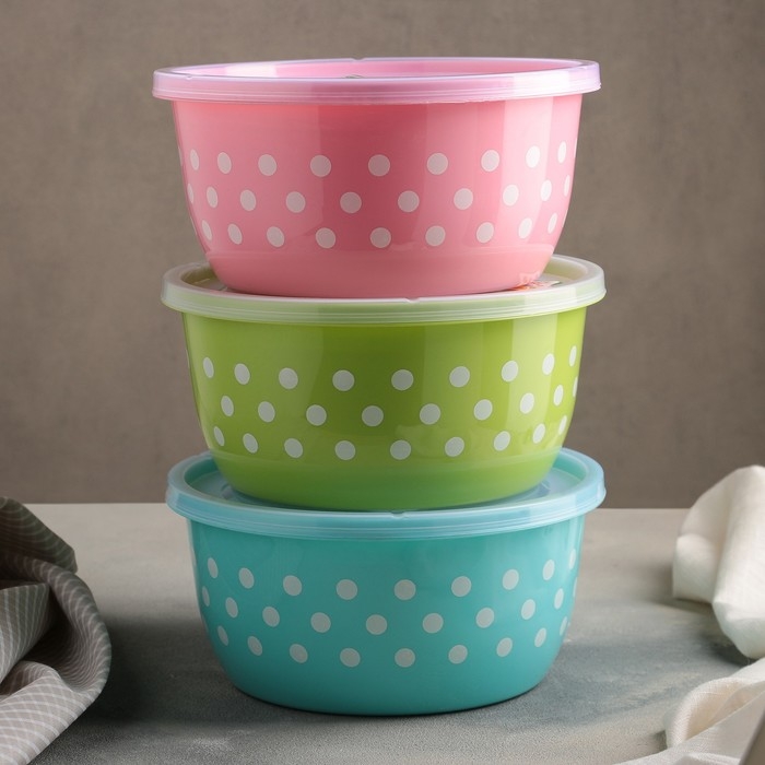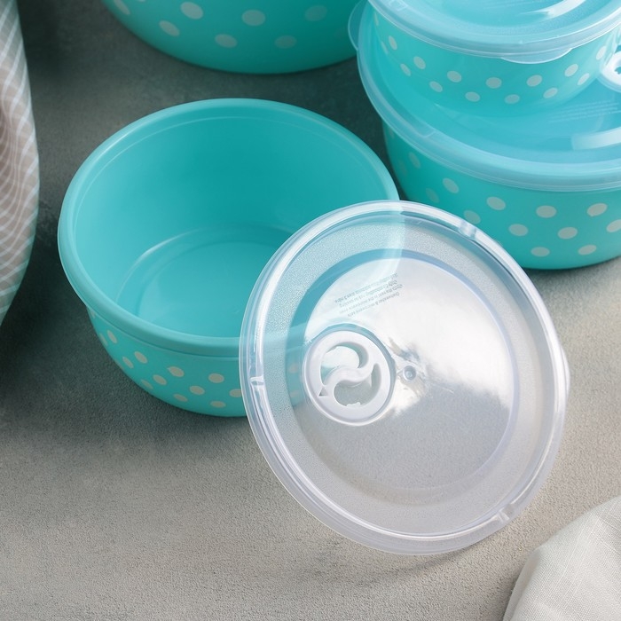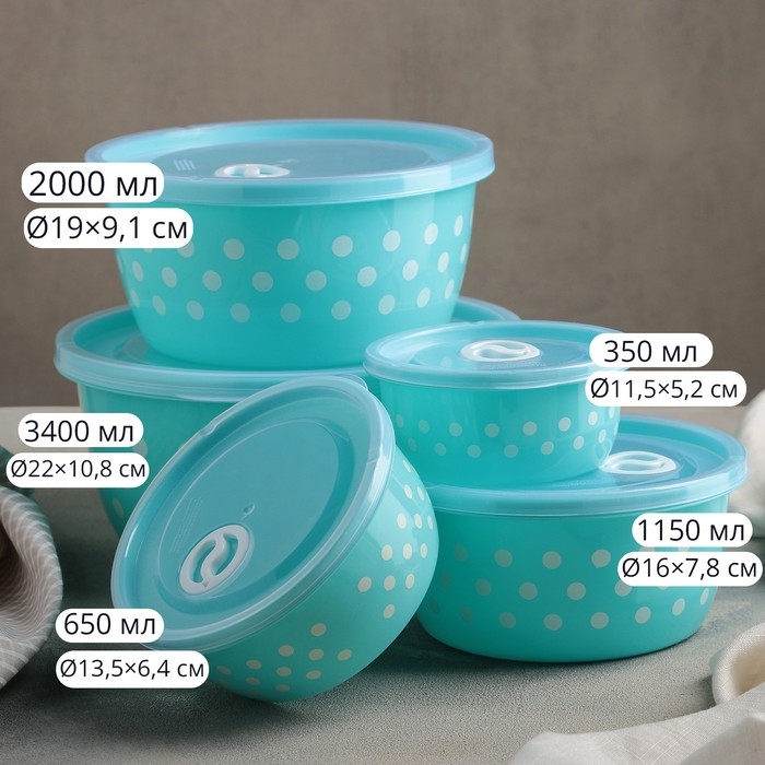 Набор ланч-боксов пластиковых «Горошек», 5 шт: d=22, 19, 16, 13,5, 11,5 см, цвет МИКС