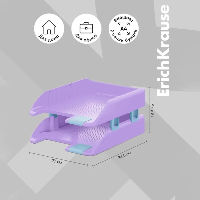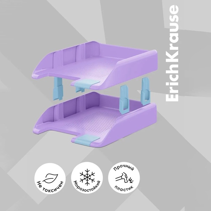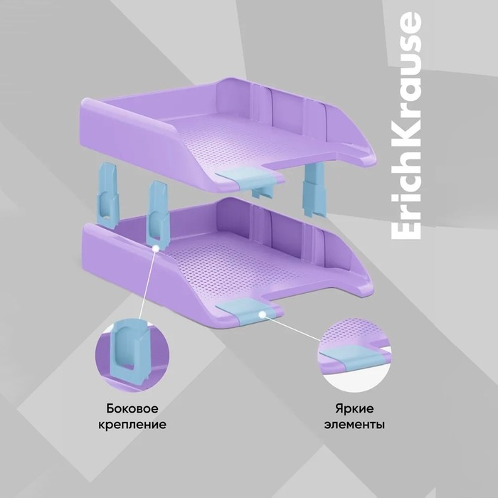 Настольный набор лотков для хранения документов, журналов и каталогов. Изготовлен из высококачественного пластика. Благодаря специально разработанной перфорации основания и надежному боковому креплению лотки легко устанавливаются друг на друга в несколько ярусов, сохраняя при этом устойчивость конструкции.