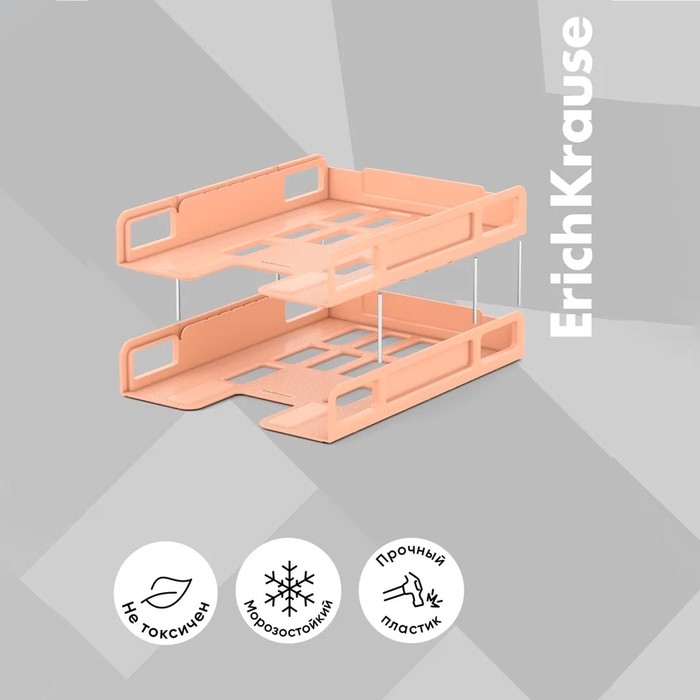 Набор лотков горизонтальных - трансформеров для бумаг ErichKrause Techno, Pastel Bloom, 2 штуки, персиковый