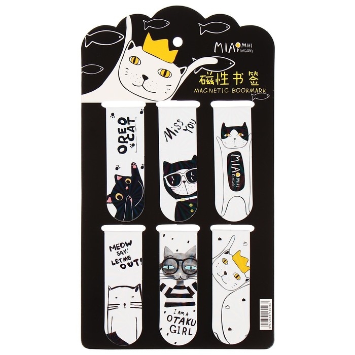 Набор магнитных закладок для книг Calligrata 6 штук, "Кошки", МИКС