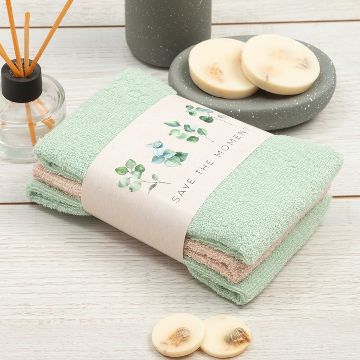 Набор махровых полотенец Этель Save the moment 30х30 см - 3 шт, 340 г/м2, 100% хл