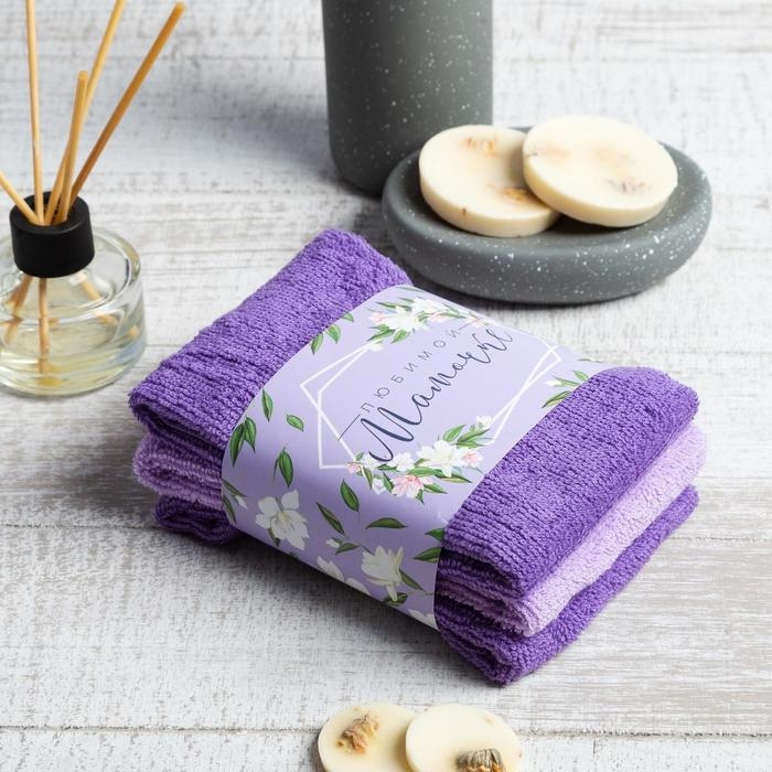 Набор махровых полотенец «Любимой мамочке» 30х30 см - 3 шт, 100% хлопок 340 гр/м2