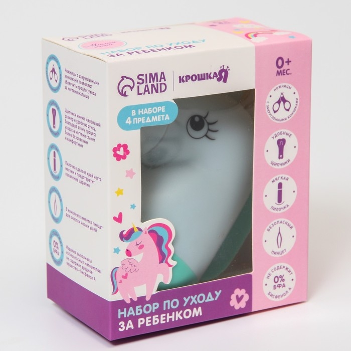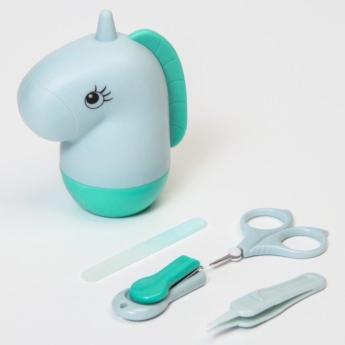 Набор маникюрный детский «Единорог»: ножницы, щипчики, пилочка, пинцет, цвет бирюзовый
