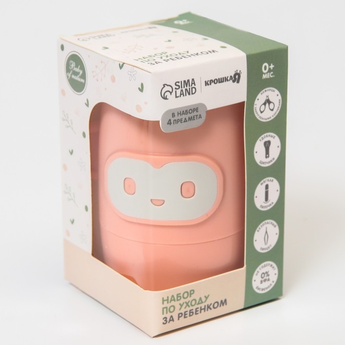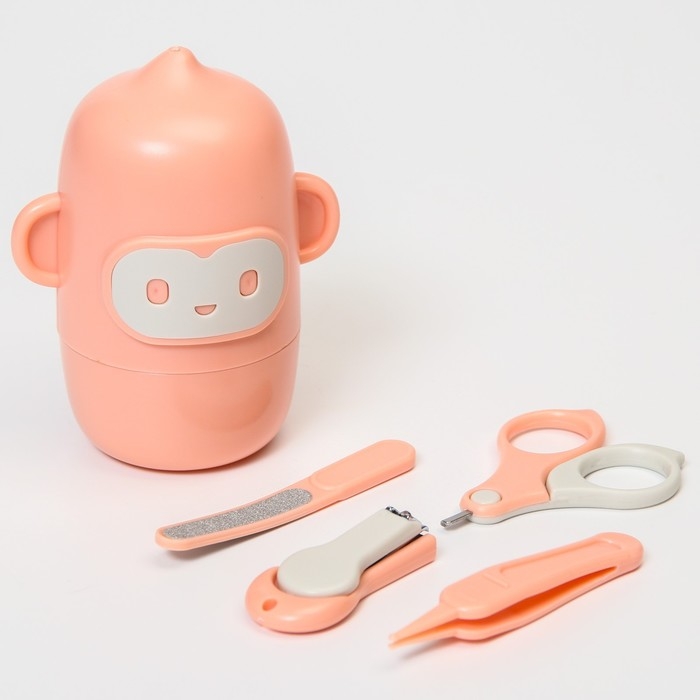 Набор маникюрный детский «Обезьянка»: ножницы, щипчики, пилочка, пинцет, цвет розовый