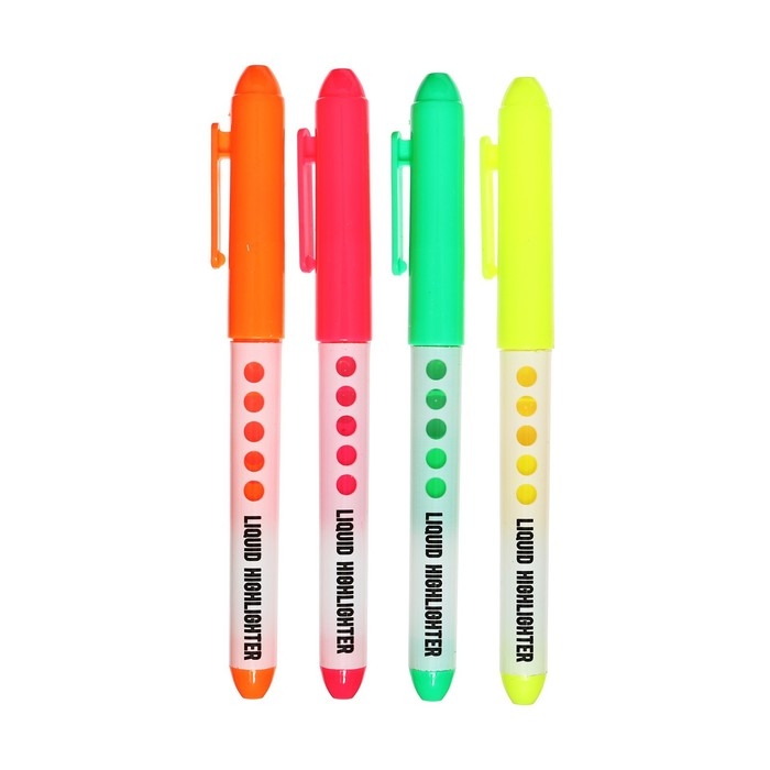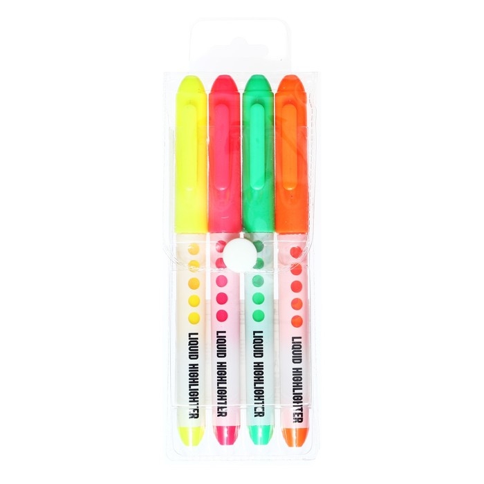 Набор маркеров-текстовыделителей, 4 цвета, 4 мм, с жидкими чернилами